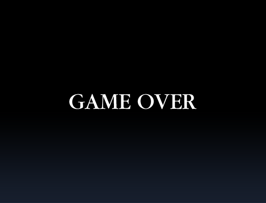 Game Over shows an image that is 640x480 pixels in size by default. When activated, the screen fades into the game over image, while at the same time playing the game over music set.