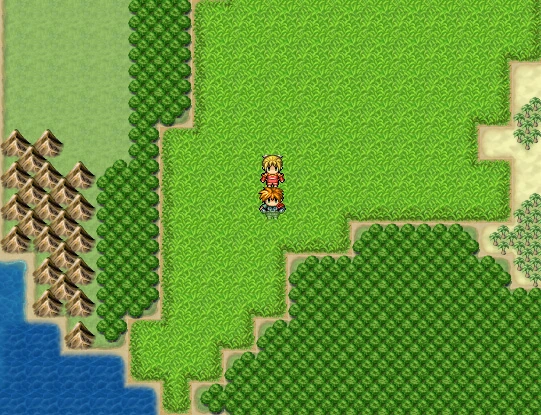 Xyan Warriors is a traditional console role-playing game featuring two-dimensional character sprites and environments. Players view the game from a top-down perspective and move their characters in four directions across various environments including towns and dungeons while interacting with non-player characters and battling enemies to advance the story.